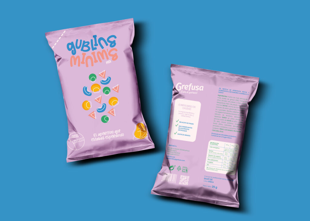 Proyecto de rediseño del envase de patatas, Gublins Minim’s Mix de Grefusa, enfocado a un público infantil.