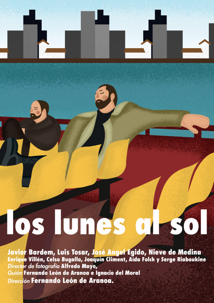 Con motivo del paso de los Premios Goya por Granada, se ha realizado una exposición conmemorativa dedicada a las películas galardonadas a lo largo de la historia de estos premios. Dentro de esta muestra, he tenido la oportunidad de ilustrar el cartel de Los lunes al sol (2002), película dirigida por Fernando León de Aranoa y ganadora del Goya a la Mejor Película en 2003, entre otros importantes reconocimientos.